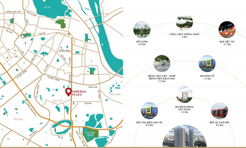 Imperial Plaza tọa lạc tại vị trí đắc địa hàng đầu Thủ đô, mảnh đất “Vàng” nằm ngay trên mặt đường Giải Phóng khu vực được đồng bộ hóa về cơ sở hạ tầng cùng với công viên hồ điều hòa rộng lớn. Nơi đây là khu vực tập trung đông dân cư và có tốc độ đô thị hóa phát triển nhanh nhất của quận Thanh Xuân.